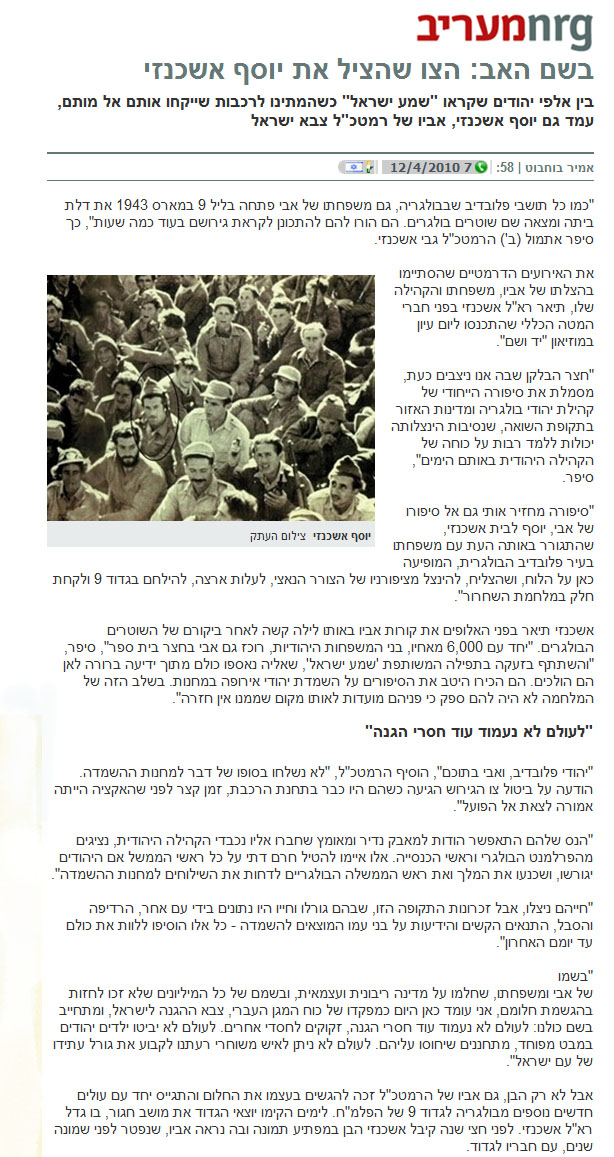 רב אלוף אשכנזי מספר על סיפור הצלתו של אביו בפלובדיב בולגריה ע"י ביטול צו הגירוש, כתבה מרתקת